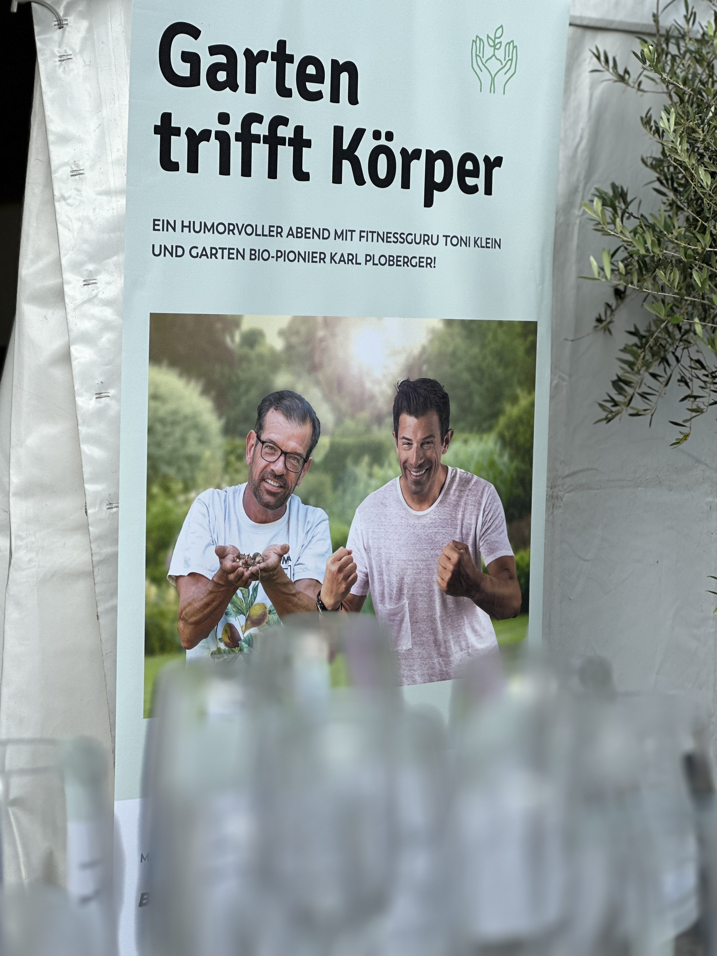 Diese und weitere ungewöhnlich überraschende Fragen beantworteten Fitnessguru Toni Klein und Garten-Experte Karl Ploberger in ihrer brandneuen Bühnenshow „Garten trifft Körper“. In dem bunten Programm widmete sich das Duo mitreißend-spontan hochaktuellen Themen rund um „Körper“ und „Garten“ und fragte sich mit einer ordentlichen Portion Humor, welche Gesetzmäßigkeiten für beide denn eigentlich gleichermaßen gelten. Locker und authentisch spielten sie sich gekonnt die Bälle zu, wenn sie erörtern, wie es ums Unkraut im Garten und Chaos im Körper steht und was die Pflege des Gartens mit der des eigenen Körpers zu tun hat.