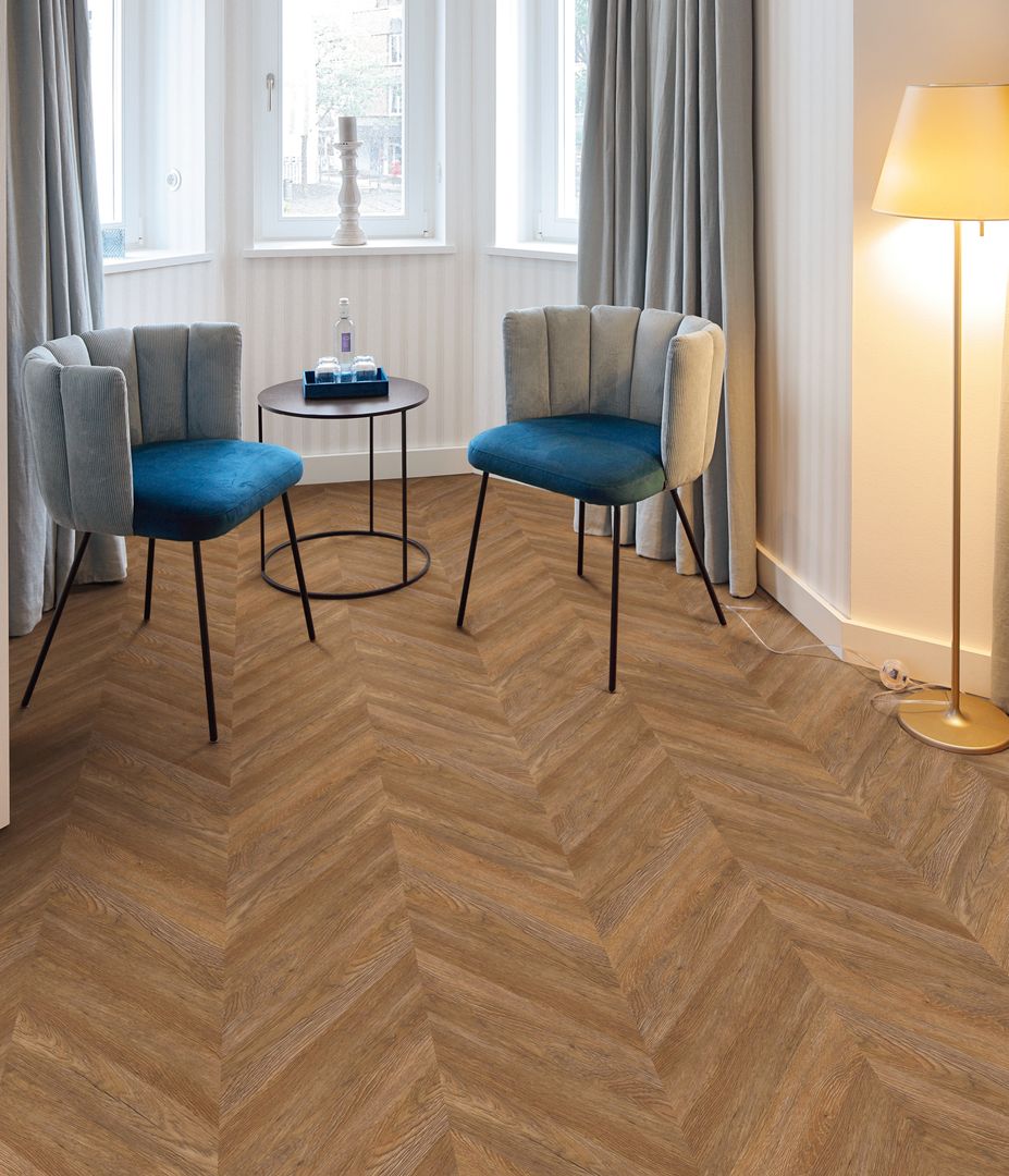 Verschiedene Verlegearten – klicken, kleben, lose legen – eröffnen unzählige Möglichkeiten. Planken im Sonderformat ermöglichen aufwändige und individuelle Verlegearten wie Fischgrät, Chevron, Holzblock und Leiterboden. Von Hotellerie über Ladenbau und Health Care Bereich, vom Restaurant über das Büro bis hin zum privaten Wohnraum, für jeden Anspruch findet sich der geeignete Bodenbelag.