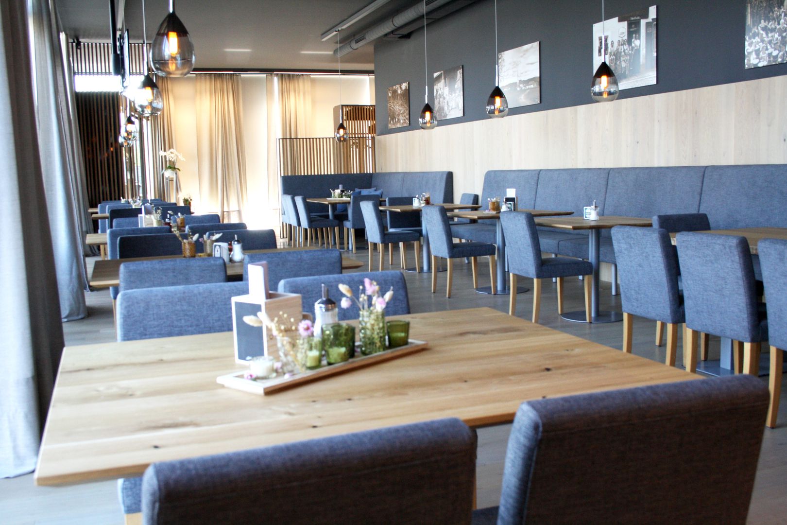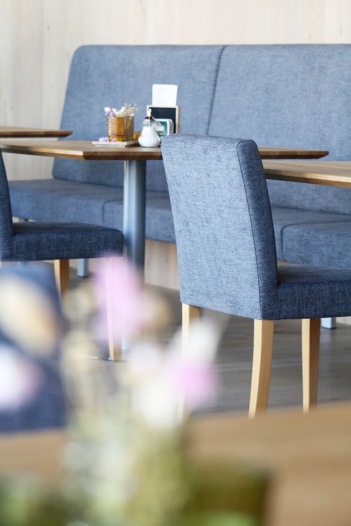 Das neue Dorf Café Pöschl in Lochen verwöhnt seine Gäste mit Süßem, sowie Herzhaftem, wie zum Beispiel dem Mattigtaler-Frühstück. Wer also vor oder nach einem Ausflug im Trumer Seenland oder Mattigtal ein schönes, gemütliches Plätzchen sucht, ist hier gut aufgehoben. Im Zuge des Umbaus wurde das immer schon sehr beliebte und gut besuchte Café komplett neugestaltet. Ein elegantes Ambiente in Eiche Astig, das einlädt zum Genießen und Verweilen. Die Raumteiler und Möbel wurden in unserer LAIMER Tischlerei, dem Kundenwunsch entsprechend, aufbereitet. Die Sitzbänke und Stühle wurden mit einem hochwertigen Stoff überzogen und vollenden den edlen Sitzbereich.