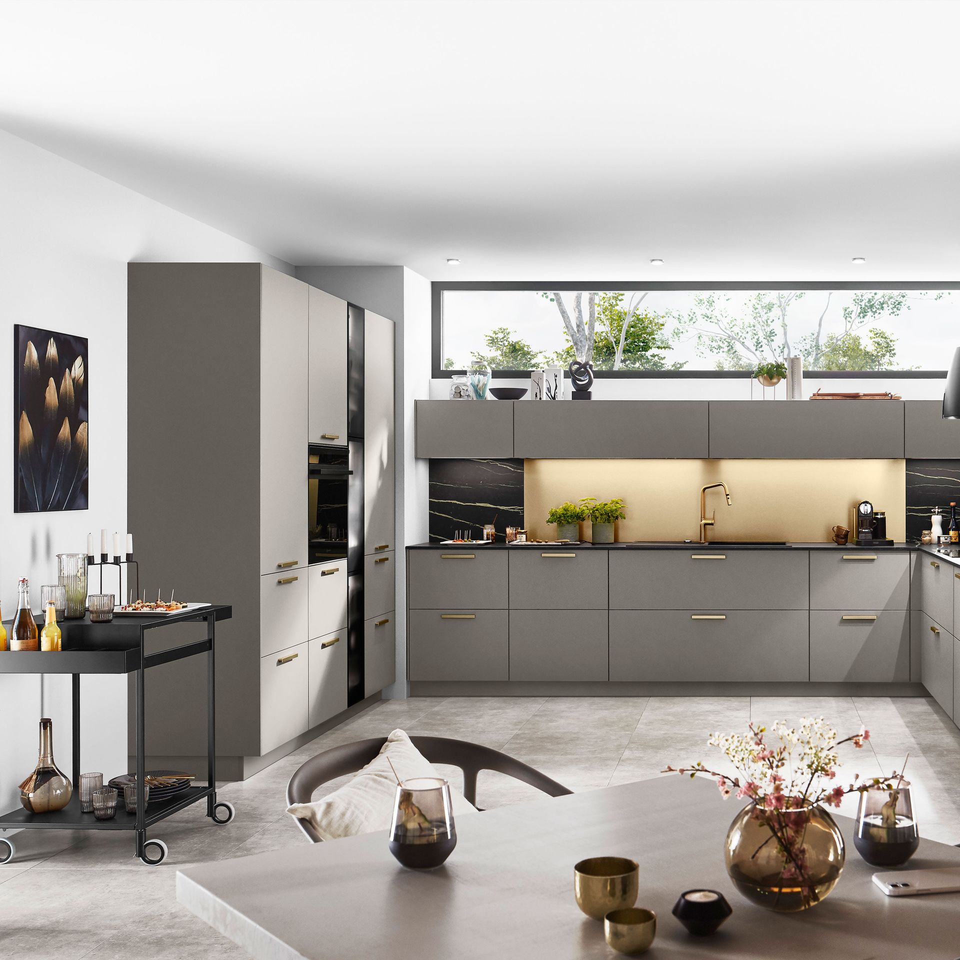 Wie sieht die Küche in den 2020-er Jahren aus? Eines ist klar: Sie ist offen für Neues. Offenes Wohnen ist so aktuell wie nie zuvor, und die einzelnen Lebensbereiche verschwimmen. In der Küche wird gearbeitet, gustiert und gekostet, auch gegessen, gechillt und verweilt. Das nicht mehr so wie vor einigen Jahren meist in klinischem Weiß, sondern in eher dunkleren Tönen. Dabei reicht der Bogen von Anthrazit über Mitternachtsblau und Tannengrün bis zu dunklen Hölzern, in die sich immer wieder ein neuer, leichter Rosé Ton mischt und für frischen Wind sorgt. Diese Farbwelt ist oft matt, in Anti-Fingerprint Optik, meist grifflos und mit vielen praktischen Details gespickt. Es gibt unzählige Varianten, um typische Küchenhelfer verschwinden zu lassen, die dann mit einem Handgriff sofort parat sind. Die Zeiten, in denen die Küche offensichtlich mit ihren technischen Hilfsmitteln geprahlt hat, sind Schnee von gestern. Alle Linien sind klar und puristisch. Die Küche beeindruckt als stylishes Designmöbel und Blickfang zugleich.