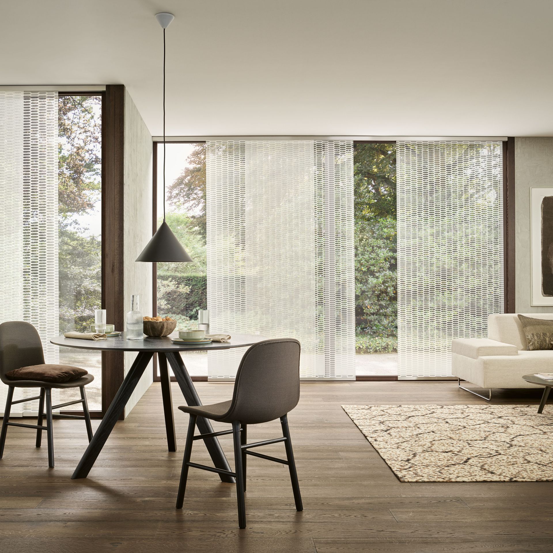 Wer die Symbiose aus puristischem Design, geraden Linien und funktionaler Beschattung für breite Fronten sucht, ist beim Flächenvorhang genau richtig. Durch die mehrläufigen Schienen können sowohl unterschiedliche Abdunkelungsstufen als auch verschiedenste Designs perfekt kombiniert und die Stoffe bzw. Behänge auch jederzeit ausgetauscht werden. In der Regel werden Flächenvorhangsysteme mittels Schleuderschiene oder Schnurzug bedient.