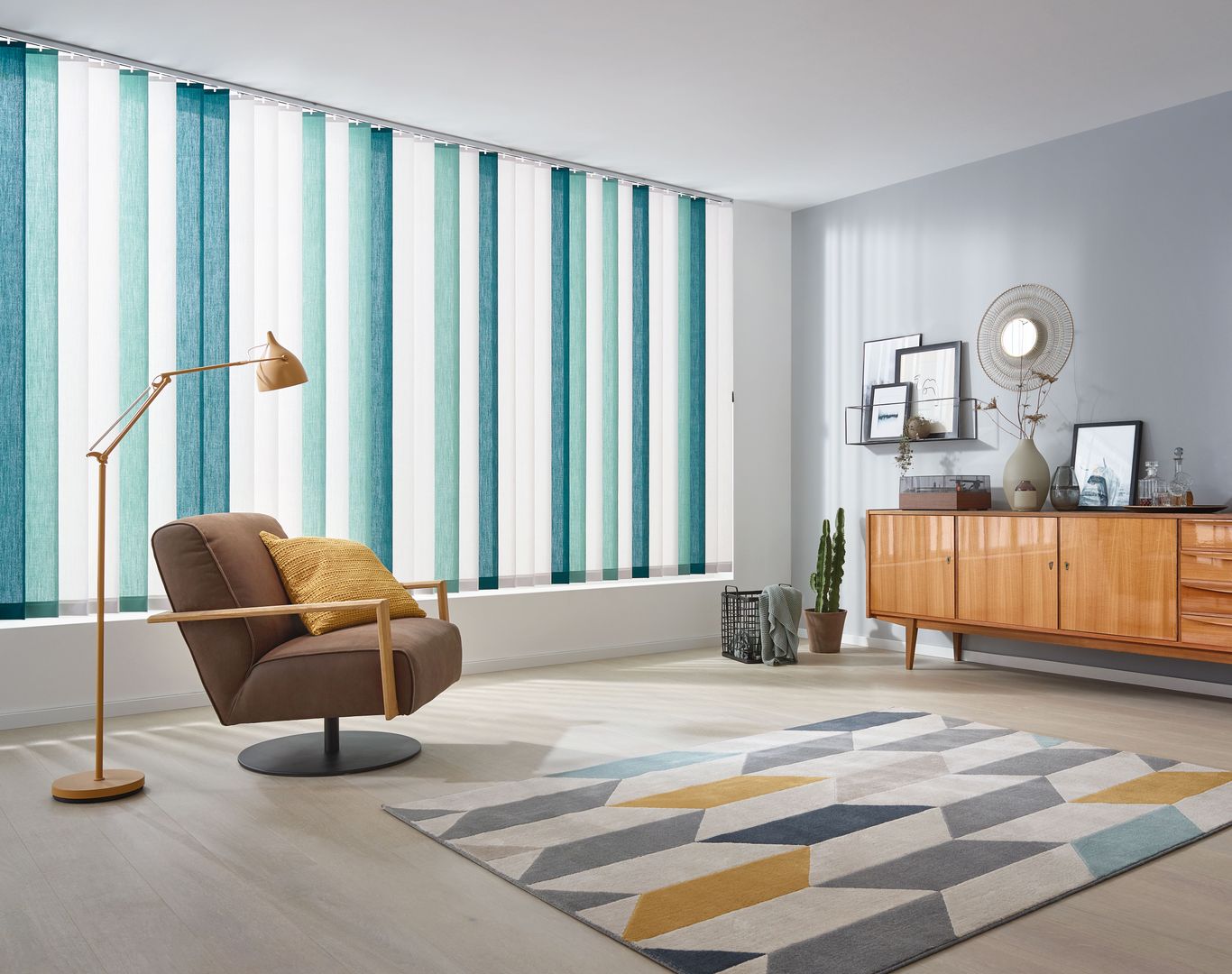 Wie wirkt ein Raum höher? Indem man das Vertikale betont. Diesem einfachen Gesetz folgt die Vertikaljalousie und schafft durch ihre großzügigen Lamellen ein Gefühl von Höhe, Freiheit und Luftigkeit. Sehr reduziertes Design und eine minimalistische Formensprache schaffen ein puristisches Ambiente, das Raum für Funktionalität lässt. Deshalb sind Lamellenvorhänge vor allem im Objektbereich und in der modernen Architektur sehr beliebt. Funktional sorgen sie für maximalen Sonnen- und Hitzeschutz, wobei durch die je nach Sonneneinstrahlung breiteren oder schmäleren Sichtschlitze - je nach Regulierung der Lamellen - für den nötigen Durchblick nach außen gesorgt und umgekehrt die Privatsphäre gesichert ist. Das Streulicht sorgt für ein angenehmes Lichtklima.