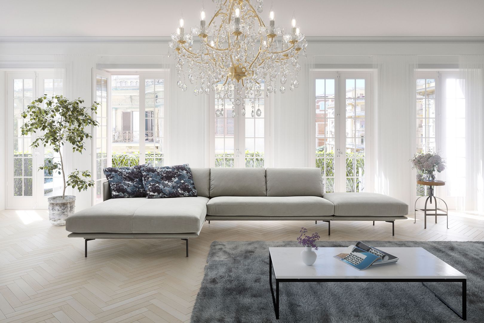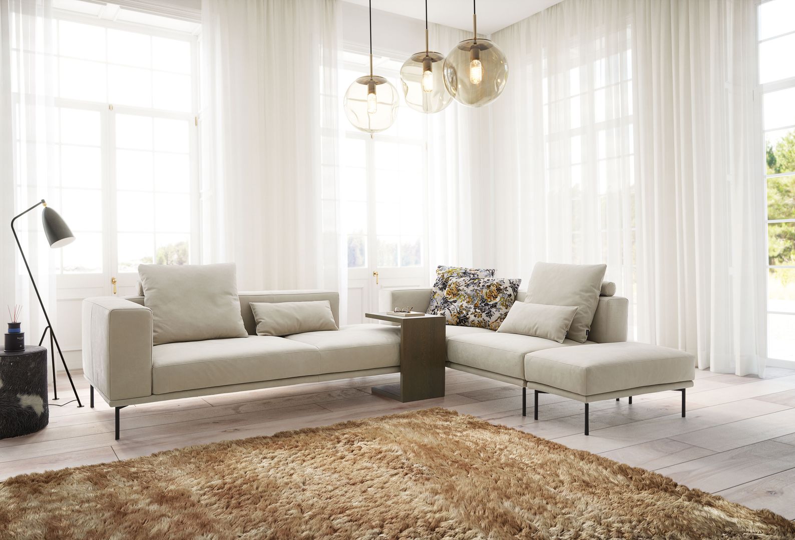 Wohnlandschaften hier, hochbeinige und grazile Sofas als Blickfang da. Auch das Auge wohnt mit. Deshalb schaffen zwischendurch oft schwarze, aber auch glänzend silberne oder farbig lackierte Metallgestelle farbige und designtechnische Kontraste – und wirken dadurch platzsparend und dennoch sehr elegant.